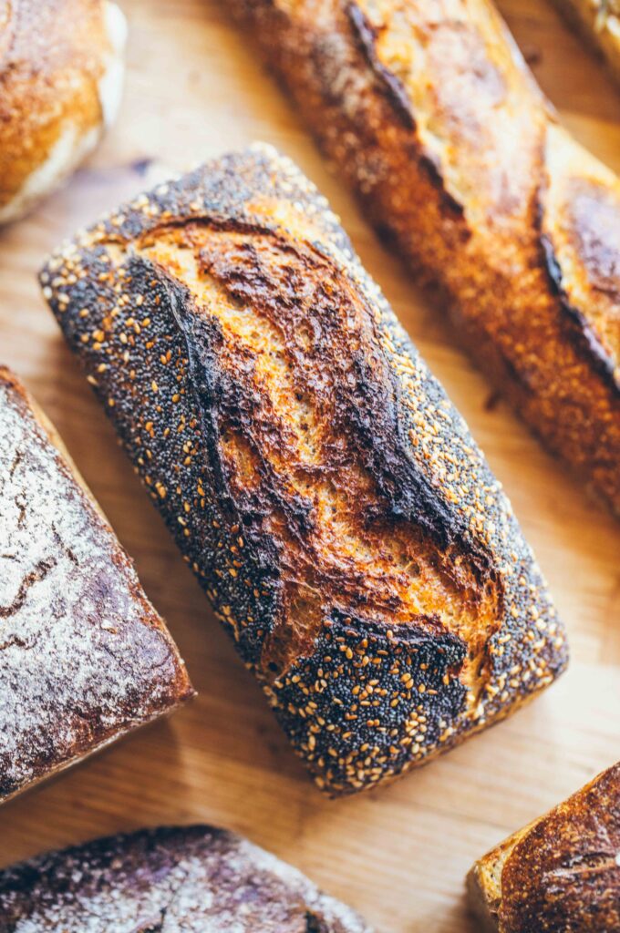 W naszej ofercie, oprócz stałego zestawu chlebowego rotującego się w zależności od dnia zawsze znajdziesz coś nowego i zaskakującego – pracujemy ze składnikami sezonowymi a nasze wypieki powstają w drużynowym duchu. Pieczemy chleby mieszane z mąki pszennej chlebowej oraz mąki żytniej razowej a także chleby jednogatunkowe z pełnoprzemiałowych mąk zbóż uprawianych na ziemiach polskich: żyta, orkiszu, płaskurki i pszenicy samopszy.